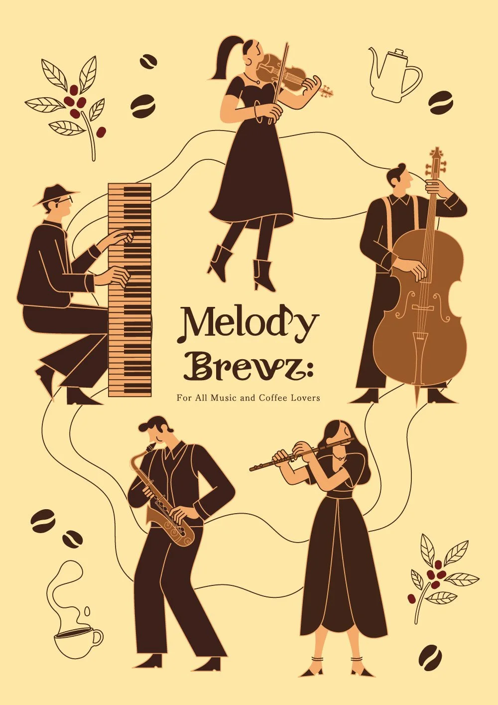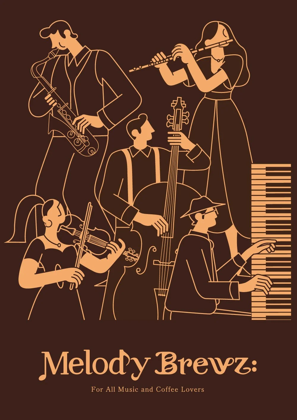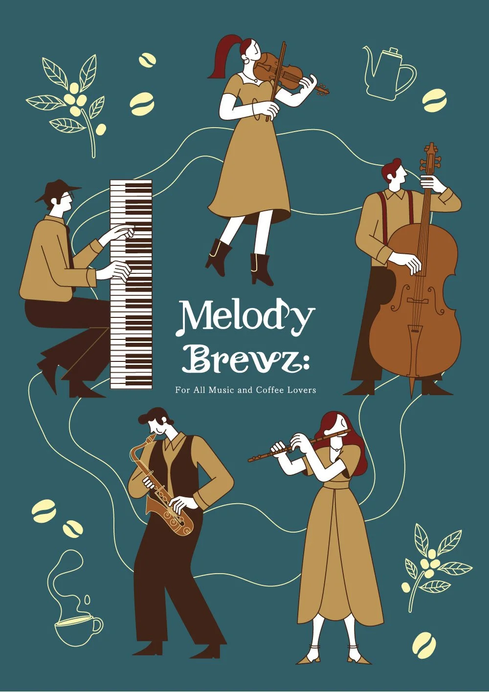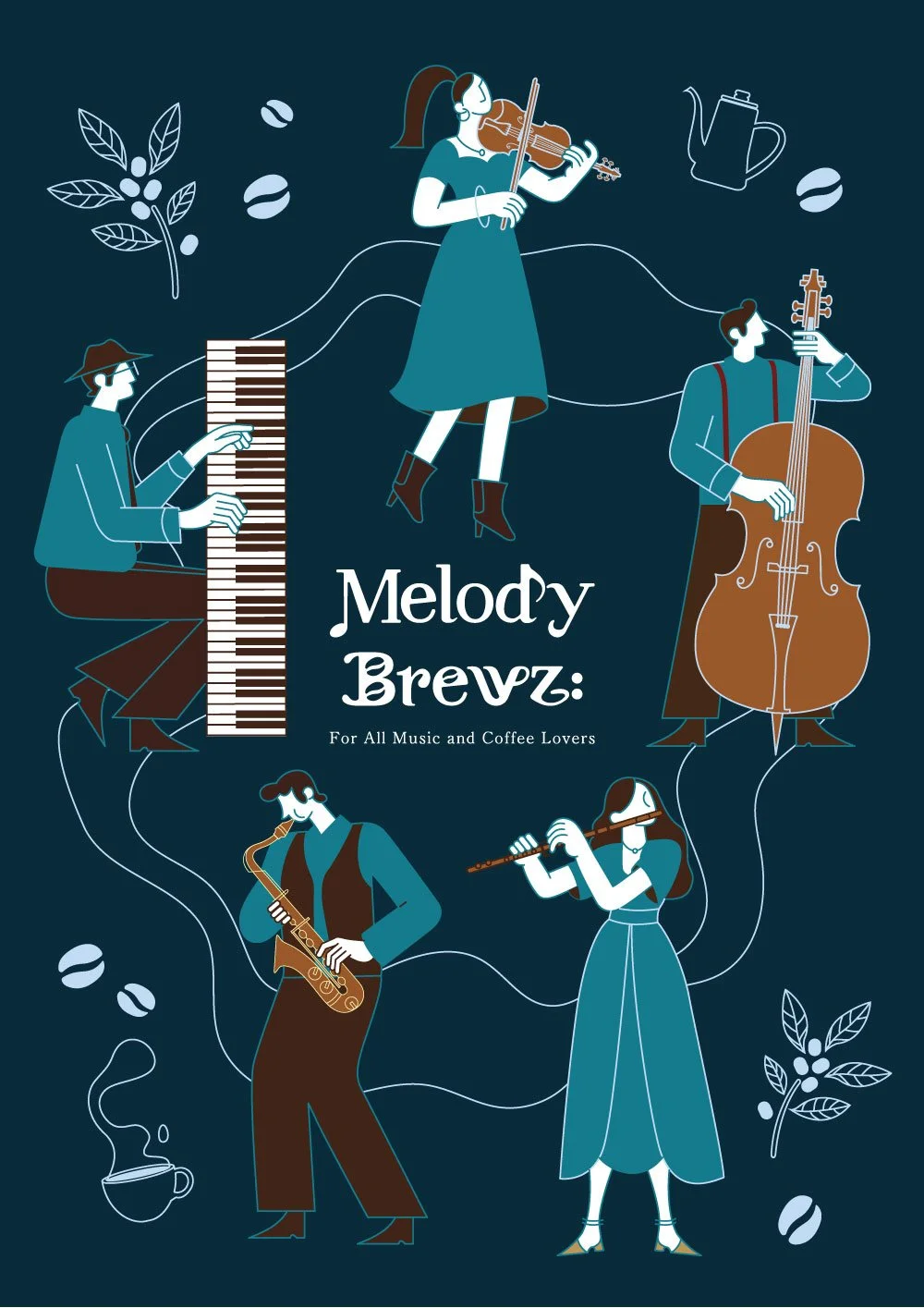 I designed the logo and supporting illustrations with the intention of blending musical rhythm and the warmth of freshly brewed coffee. The identity highlights Melody Brewz’s dual passion—great music and great coffee—while creating an inviting atmosphere that makes people want to return again and again.